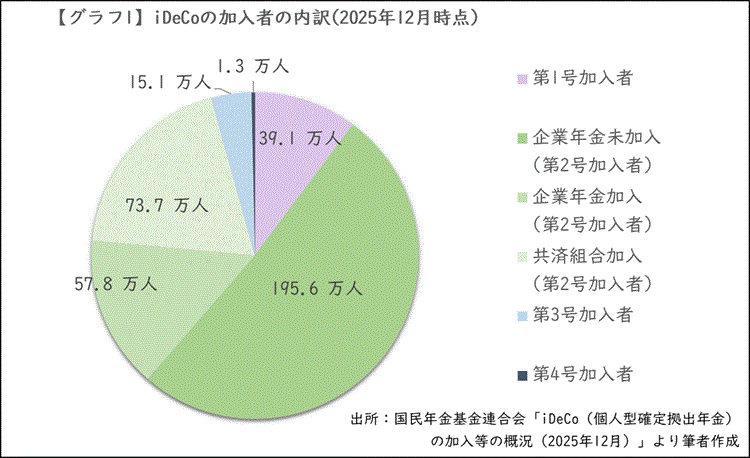 iDeCoは、公的年金制度の被保険者種別によって4つの加入区分に分けられており、2025年12月時点の加入者は以下の通りです。