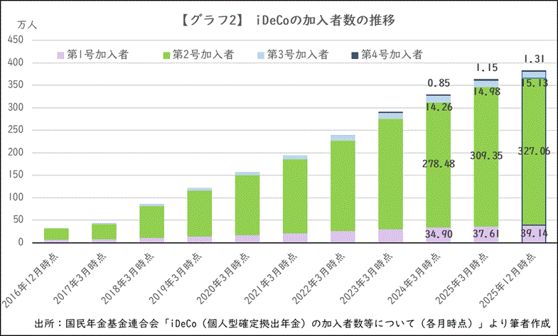 2025年12月末のiDeCo加入者は382万人超、8.1%増