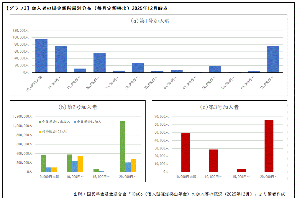 【グラフ3】は、加入者区分ごとの掛金額の分布です。