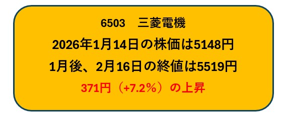 今回は2026年1月に取り上げた三菱電機の値動きを振り返ります。