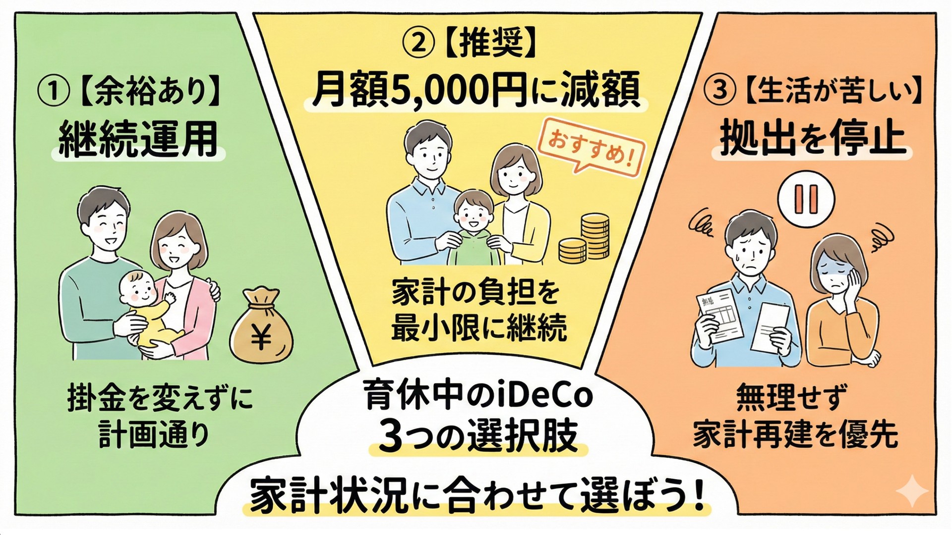 【家計状況別】育休中のiDeCoを運用する3つの選択