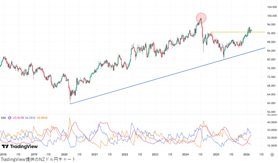 NZドル円の週足分析:2020年来の上昇トレンドに回帰