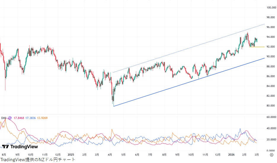 NZドル円の日足分析:押し目買いが基本線だが短期的な調整も考慮