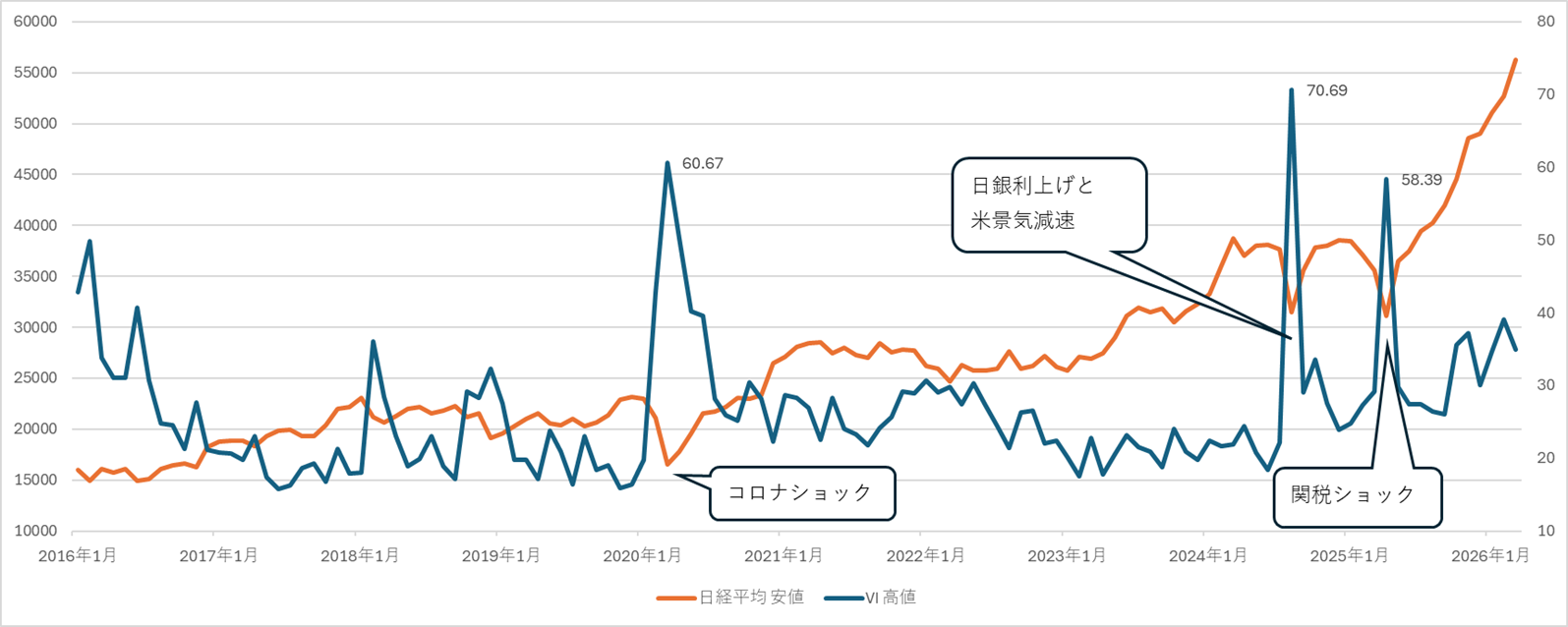 ここで参考指標としたいのが日経平均ボラティリティ・インデックス(日経平均VI)という指標です。日経平均のオプション取引を基に算出する指数であり、日本版の恐怖指数とも呼ばれます。急落局面でなぜ日経平均VIを見たいのか、今回解説していきます。