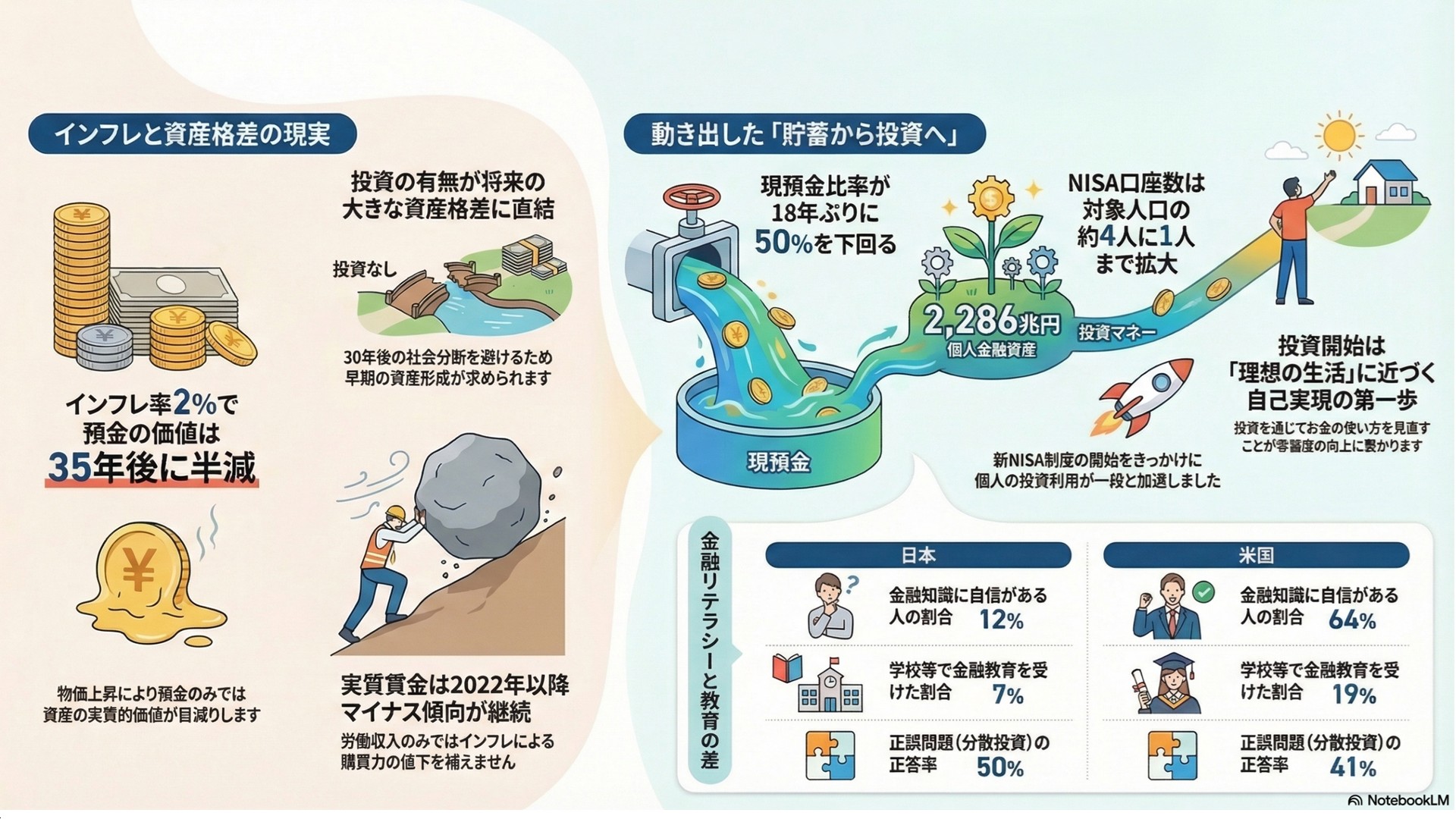 「資産形成白書 2026」が示すのは、単なる投資ブームの解説ではありません。投資をする人としない人の間で、将来的に回復困難なほどの資産格差が生まれるリスクへの警鐘です 。