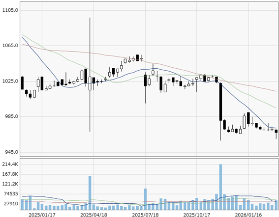 足もとの株価は昨年来安値958円(2025年11月27日)に接近してきています。株主優待も魅力的ですので、「遊べる本屋」という独自のコンセプトを持つ同社に注目してみるのも面白いと思います。