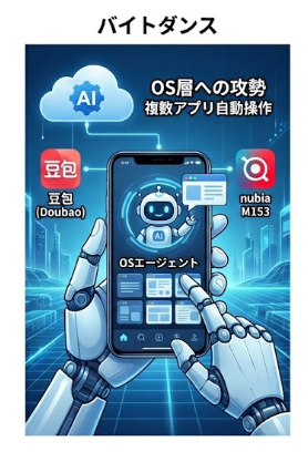 つまり、バイトダンスはアプリ単体ではなく、スマホの基本ソフト(OS)のレベルでAIを普及させようとしているのです。この戦略が成功すれば、AIがスマホの操作そのものを支援するようになり、新しい利用体験が生まれる可能性があります。