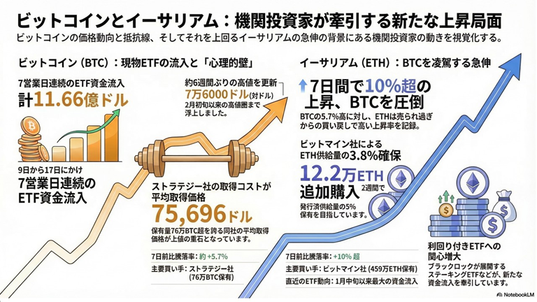 (イーサリアムが10%急騰、ETF需要とビットマインの買い増しで反発を牽引)