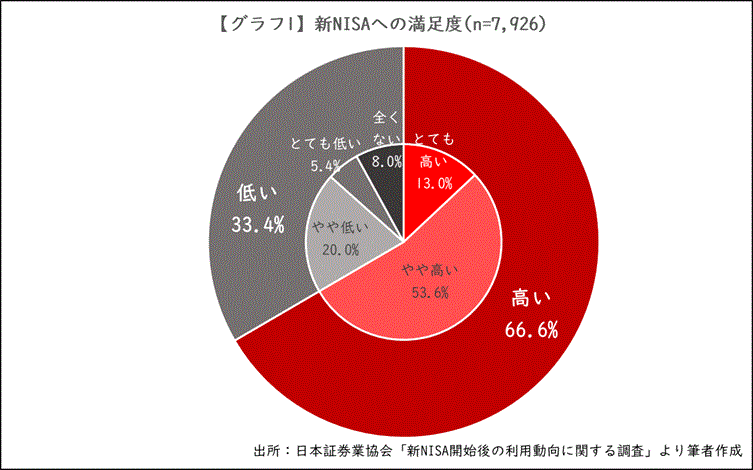 新NISAの満足度について「とても高い」「やや高い」と答えた人の合計は、66.6%にのぼりました。3人に2人が満足しているという結果は、決して小さい数字ではありません。制度が一時的なブームにとどまらず、着実に受け入れられていることがうかがえます【グラフ1】。