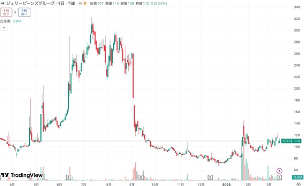 ジェリービーンズの株価:10期ぶり黒字