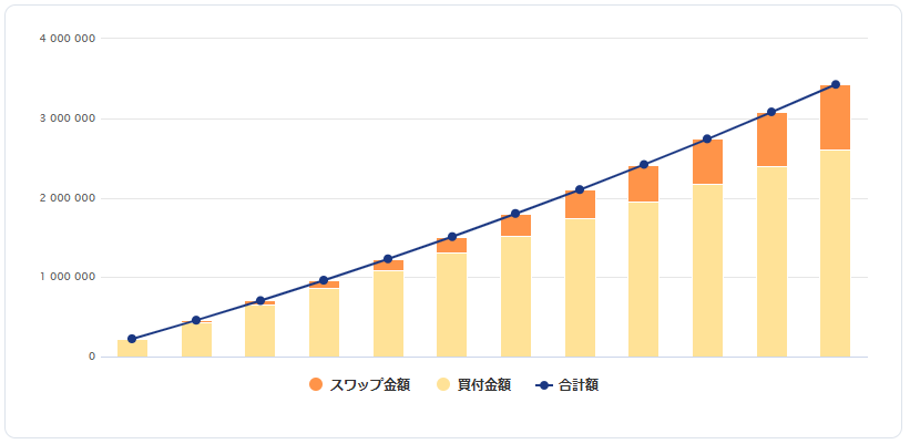 なんと、毎日1,000円をコツコツ積み立てるだけで、10年後にはスワップポイントだけで約80万円のプラスに!