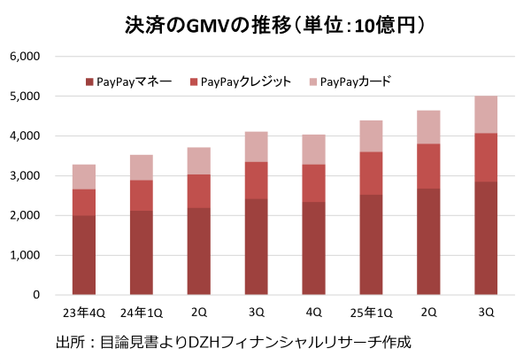 PayPayは2018年に事業を始めてから短期間で急成長を遂げました。事実上の初年度に当たる2020年3月期に約1兆3000億円だった決済事業の総取引額(GMV)は5年後の2025年3月期には10倍超の15兆3900億円に急増しています。