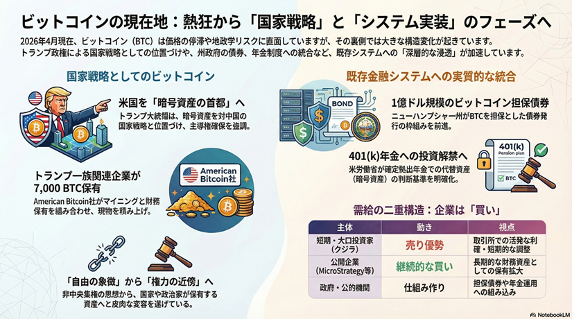 相場にとっては追い風になり得る一方で、「国家から自由であること」を掲げてきた資産が、いつの間にか権力に近い場所で価値を高めている。少し皮肉なねじれが含まれているとも言えそうです。