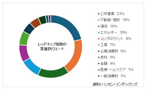 香港市場に上場する株式は、レッドチップ、H株、その他の3種類に大きく分けられます。レッドチップは一般的に中国資本が30%以上で、香港のほか、ケイマン諸島やバミューダ諸島、英領バージン諸島(BVI)などのタックスヘイブンで登記された企業が発行した株式を指しており、法律と会計制度は登記地のものが適用されます。レッドチップという名称は、収益性や安定性、成長性に優れた優良株を意味する「ブルーチップ」を中国共産党のカラーにもじって呼んだことからきています。