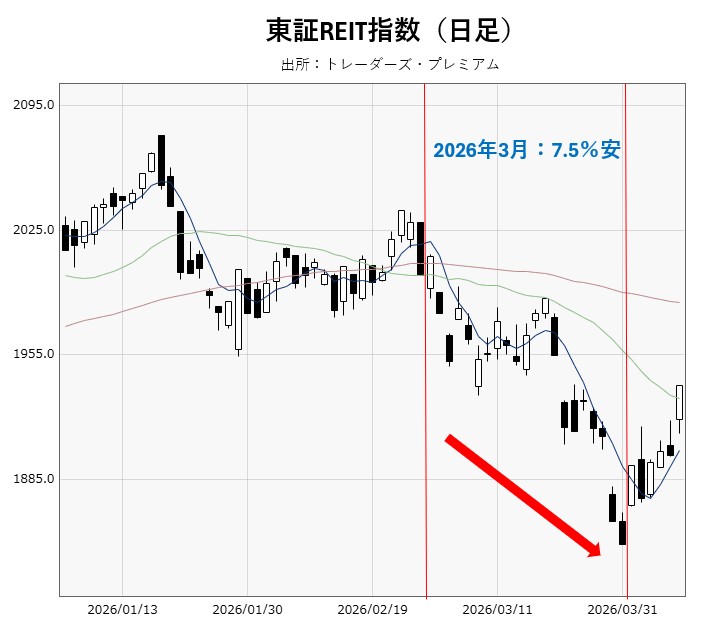 3月のREIT指数は、月間で7.5%安と大幅に下落しました。