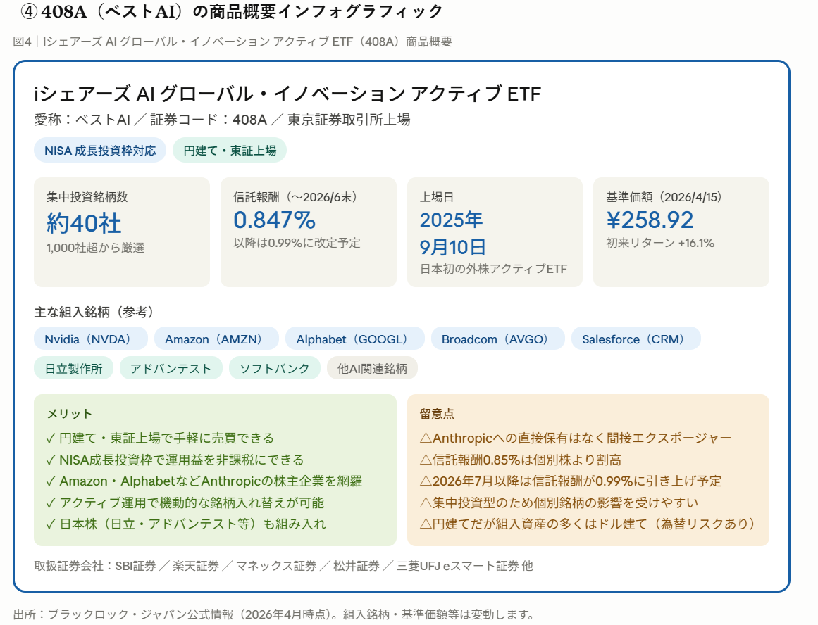 iシェアーズ AI グローバル・イノベーション アクティブ ETF(証券コード:408A)― 愛称:ベストAI