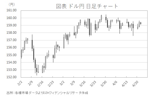 しかし、その下げは総じて浅く、すぐに押し目として吸収される展開が続いています。実際、ここ数週のドル円は157円台へ下振れる場面を挟みつつも159円台へ戻す粘りを見せ、160円台定着こそ難しいものの、下値は厚い状態が続いています(図表参照)。